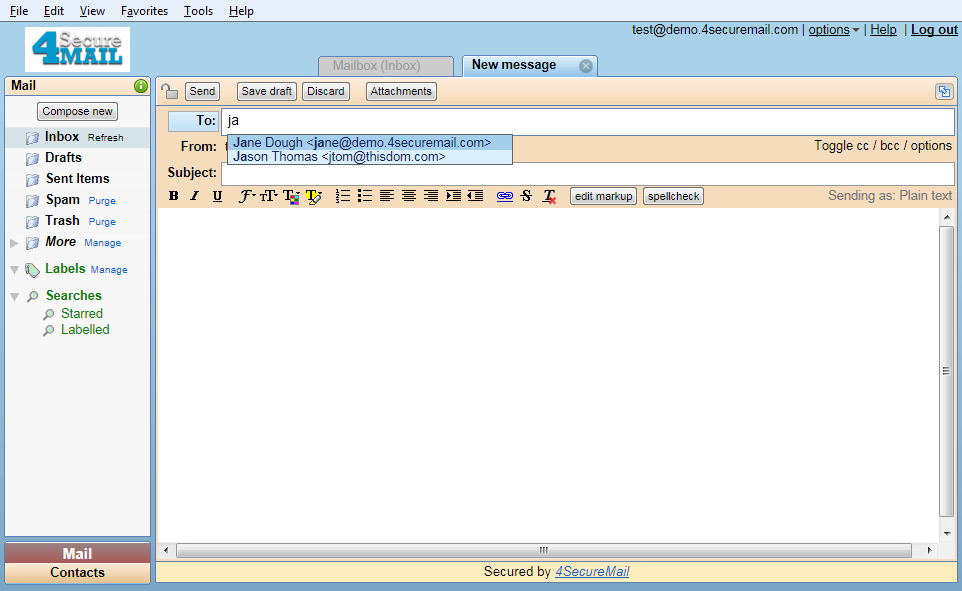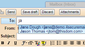 Type in a few characters in the Recipients (To) field, and it will auto-complete by creating a list of possible choices. You can then select an address by mouse or by keyboard.